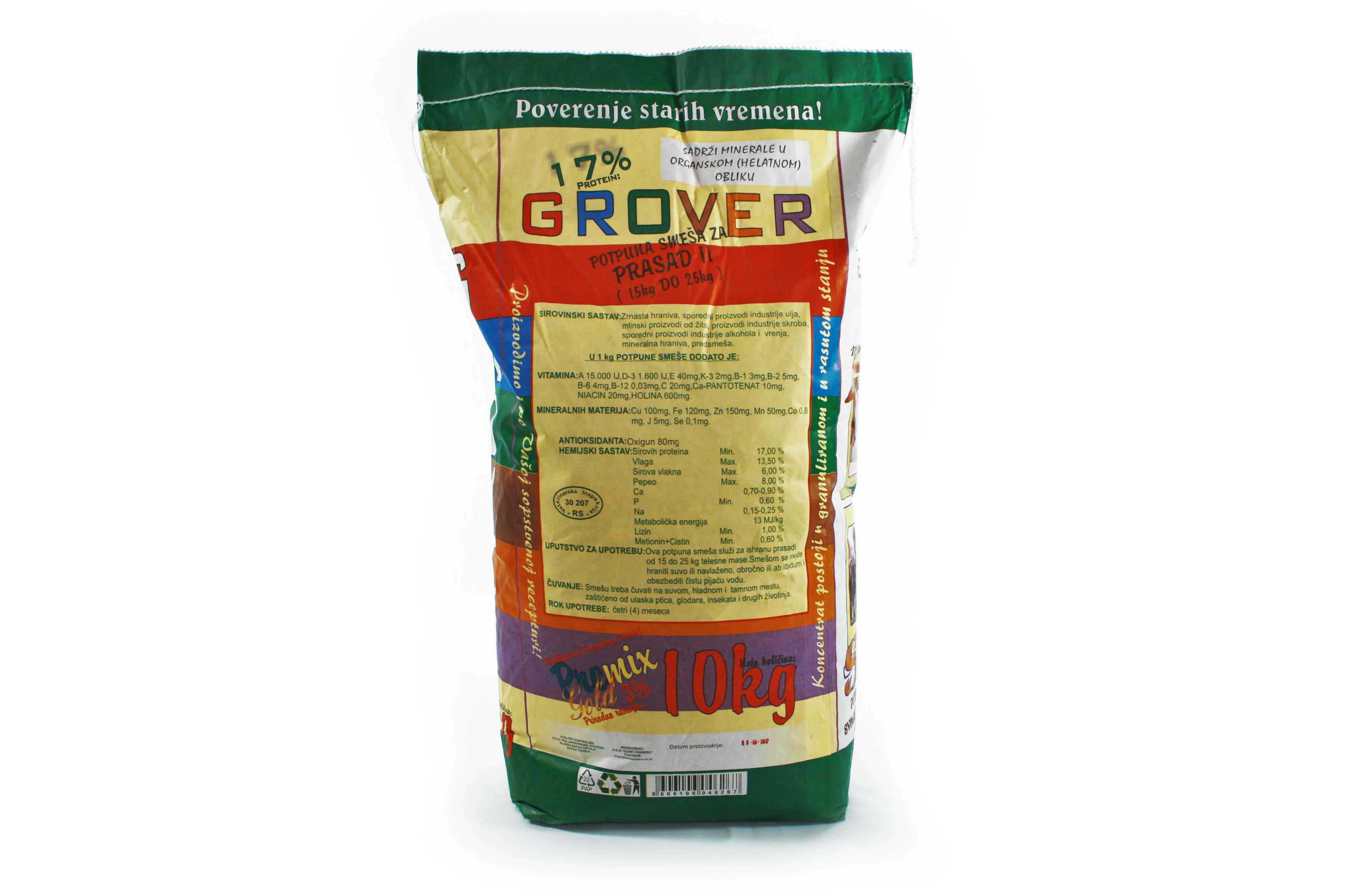 Malacok számára étvágy szerint ad libitum módra adandó, friss és tiszta ivóvíz biztosítása mellet. Közvetlenül a választás elött, ajánlott a PREDSTARTER 1:1-es arányban való bekeverése a következő tápkeverékkel (STARTER), a malacok szoktatása érdekében. Ugyanez a teendő a STARTER-ről GOVER-ra váltás során.