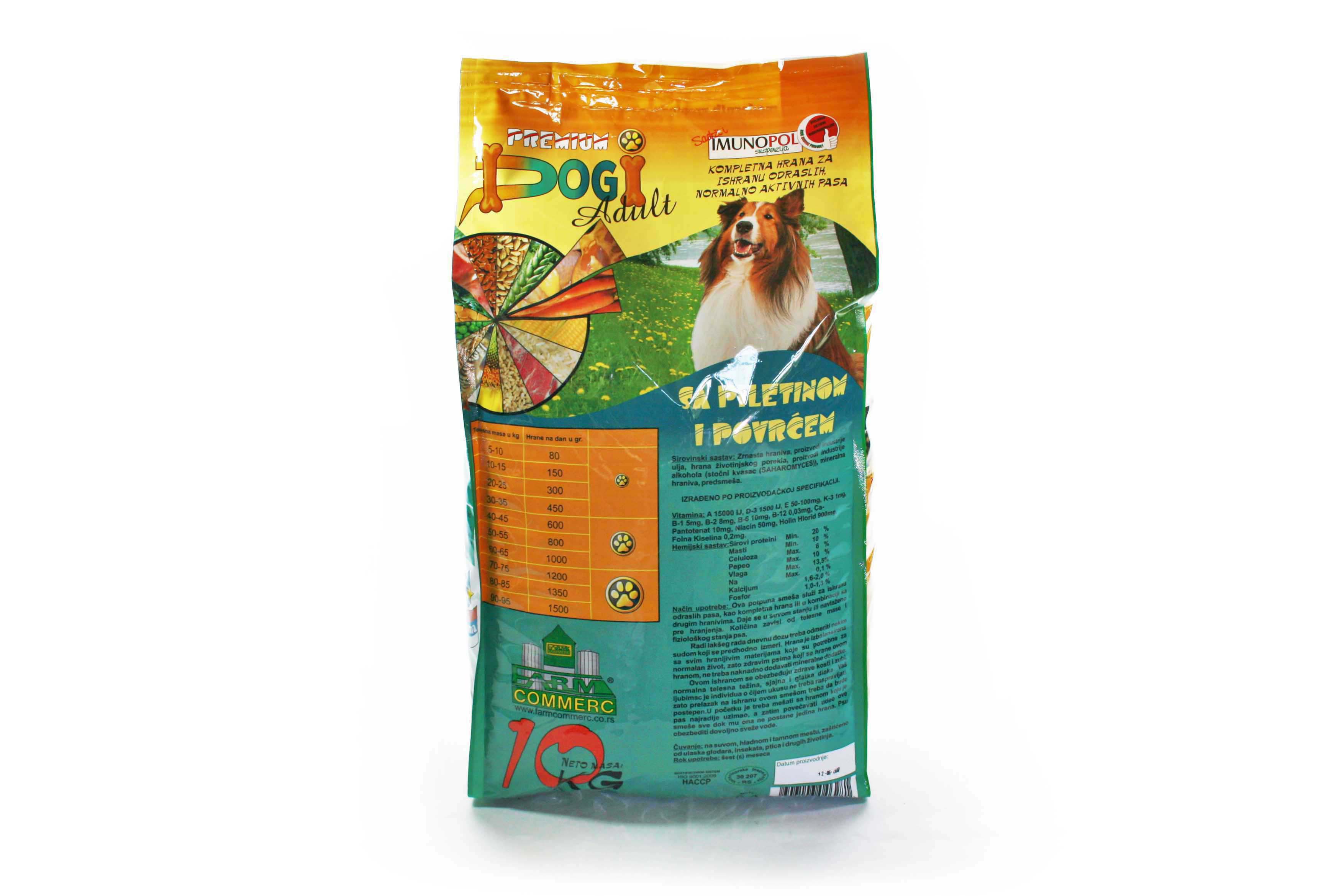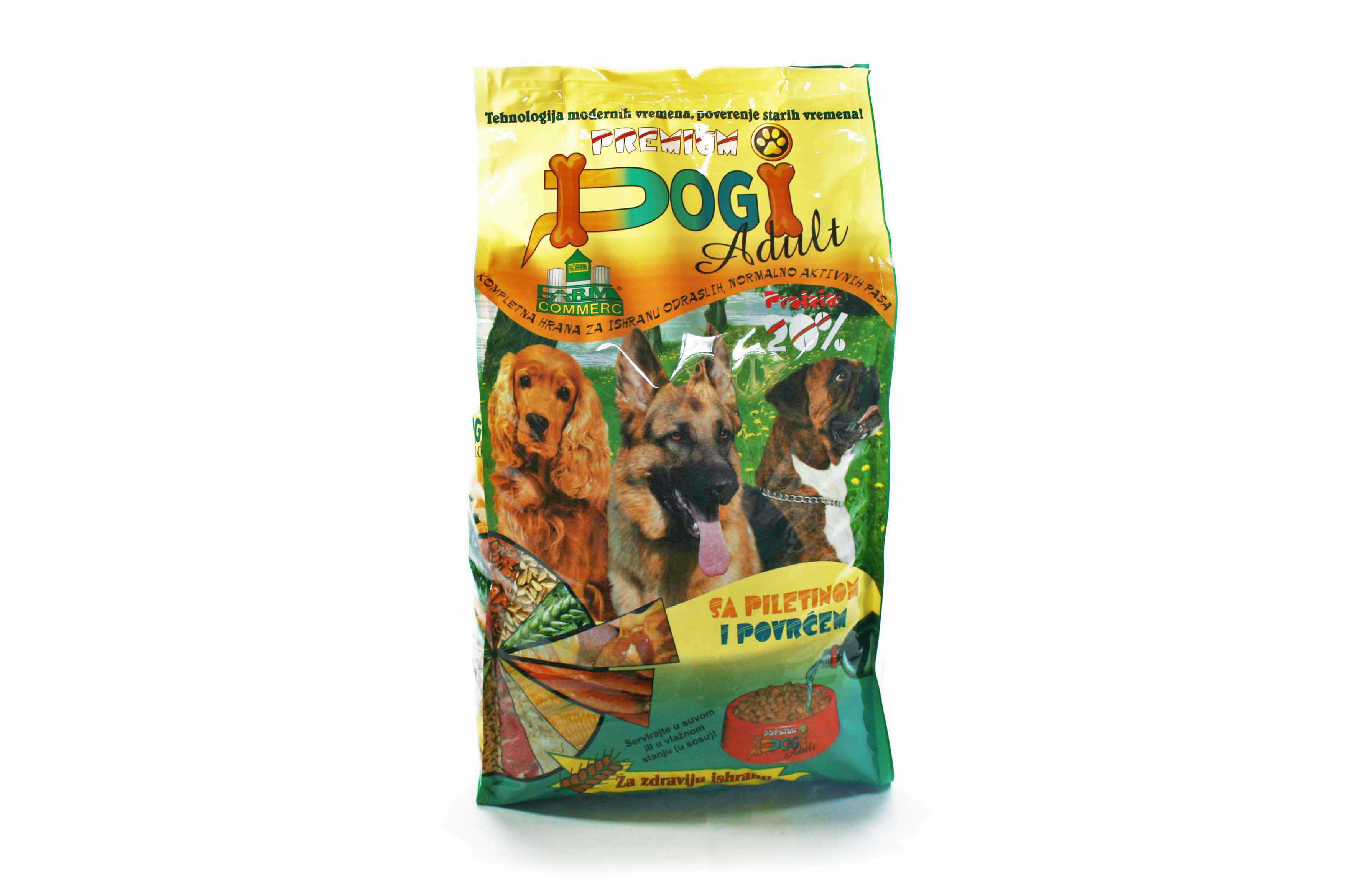 A Premium Dogi ADULT kitűnő minőségű késztáp átlagosan aktív felnőtt kutyák számára. Tartalmaz mindent ami kedvencének nélkülözhetetlen, ellenálhatatlan ízben. Kiegyensúlyozott a tápanyagokban, így nem szükséges vitamin és más ásványi készítmények hozzáadása, kivéve ha klinikailag nem indokolt. Könnyen emészthető, állati eredetű fehérjéket tartalmaz, ami fontos fehérje forrás. A Dogi Adult egészséges csontokat és fogakat biztosít, segít a normális testsúly megőrzésében, fényes és szép szőrzetet ad kedvenceinek. A hozzáadott vitaminok és ásványi anyagok segítenek az egészséges izületek megőrzésében. A nyersrost tartalom elősegíti a normális bélműködést és megakadályozza a bélelzáródást.