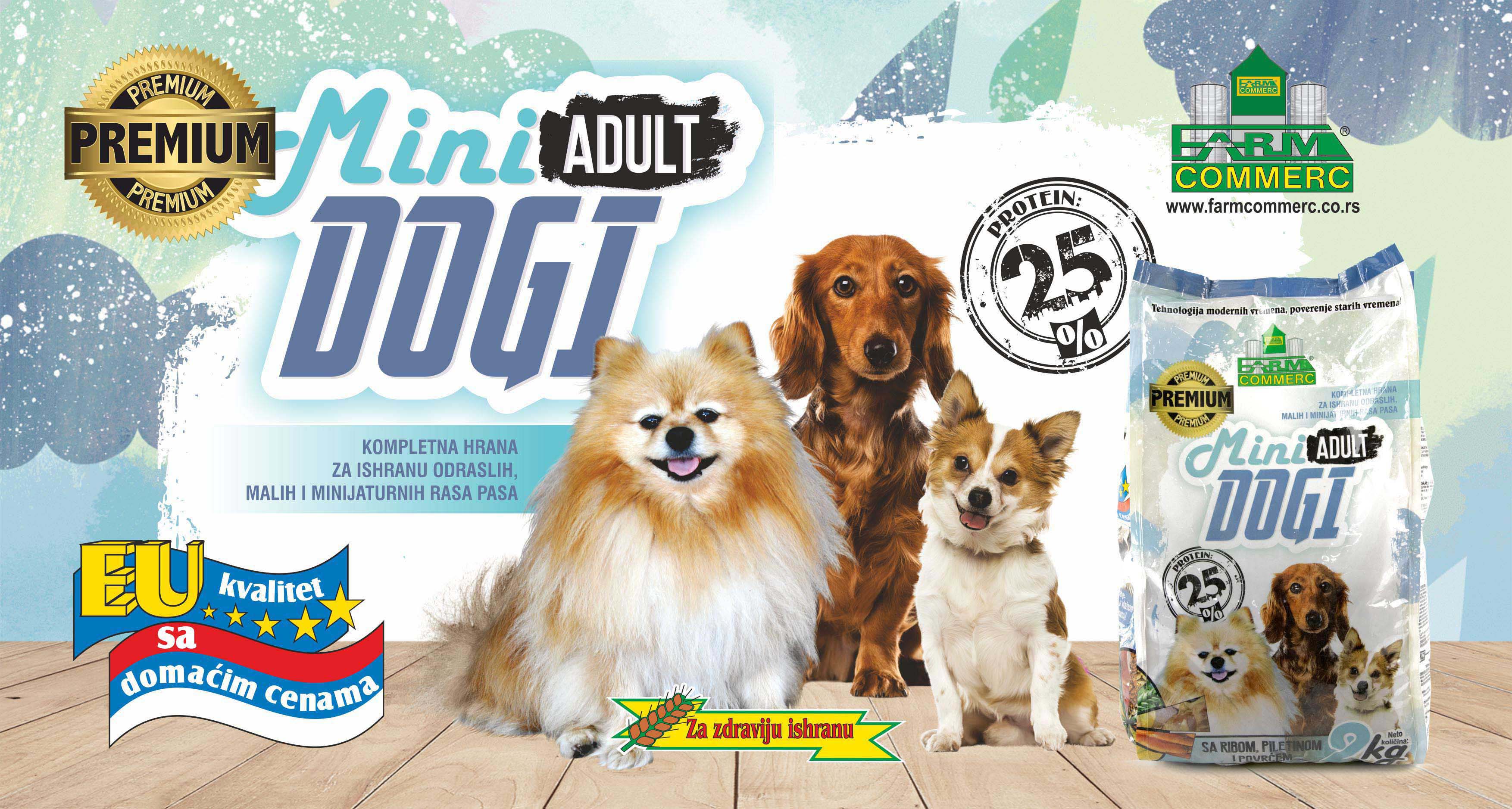 A Premium Dogi Adult Mini kitűnő minőségű késztáp KIS és TÖRPE méretű felnőtt kutyák számára. Tartalmaz mindent ami kis kedvencének nélkülözhetetlen, ellenálhatatlan ízben. Kiegyensúlyozott a tápanyagokban, így nem szükséges vitamin és más ásványi készítmények hozzáadása, kivéve ha klinikailag nem indokolt. Könnyen emészthető, állati eredetű fehérjéket tartalmaz, ami fontos fehérje forrás. A Dogi Adult Mini egészséges csontokat és fogakat biztosít, segít a normális testsúly megőrzésében, fényes és szép szőrzetet ad kedvenceinek. A hozzáadott vitaminok és ásványi anyagok segítenek az egészséges izületek megőrzésében, melyekre különösen érzékenyek a kistestű kutyák. A nyersrost tartalom elősegíti a normális bélműködést és megakadályozza a bélelzáródást.