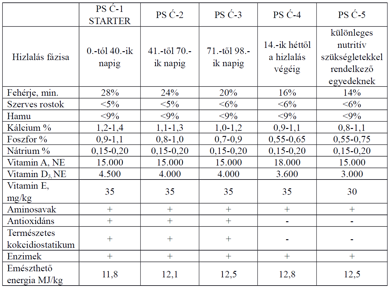 Összetételükböl adódóan kitünő eredményeket adnak a húshibridek hizlalásában és a nevelés
