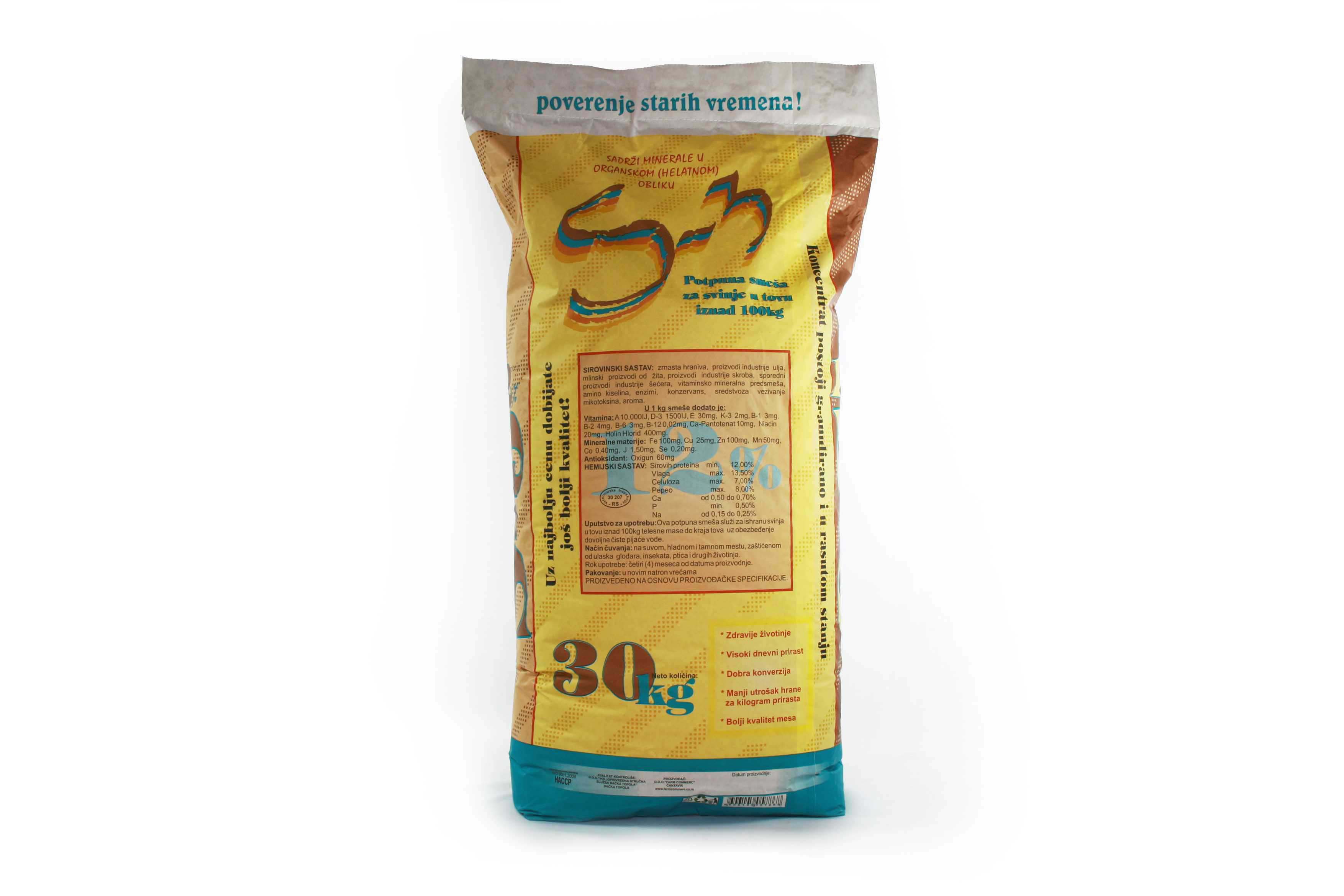 Potpuna smeša za ishranu svinja u tovu preko 100 kg.
